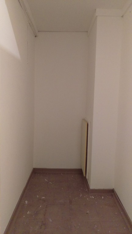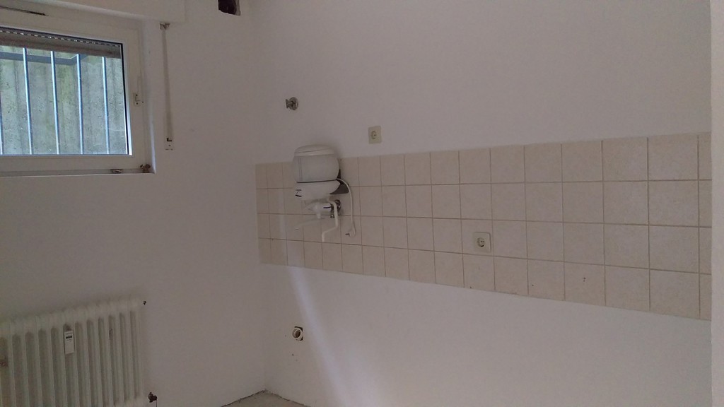 die Wände sind mit Raufaser tapeziert und weiß gestrichen