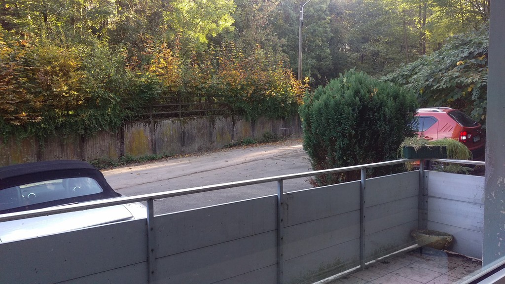 Von der Straße aus gesehen liegt die geräumige Wohnung im
